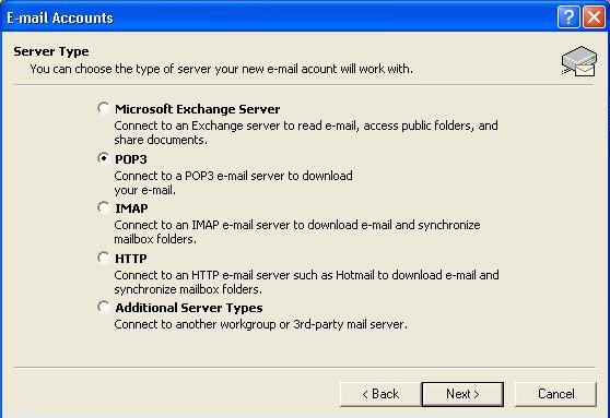 Select 'POP3' as the server type.